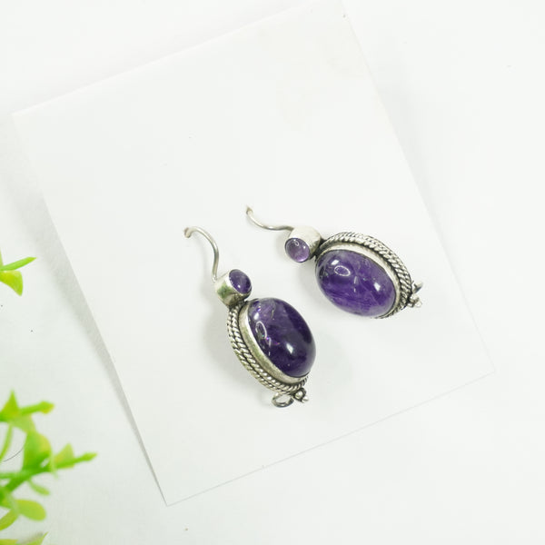 Load image into Gallery viewer, Amethyst Silver Earring : Big Oval and Round