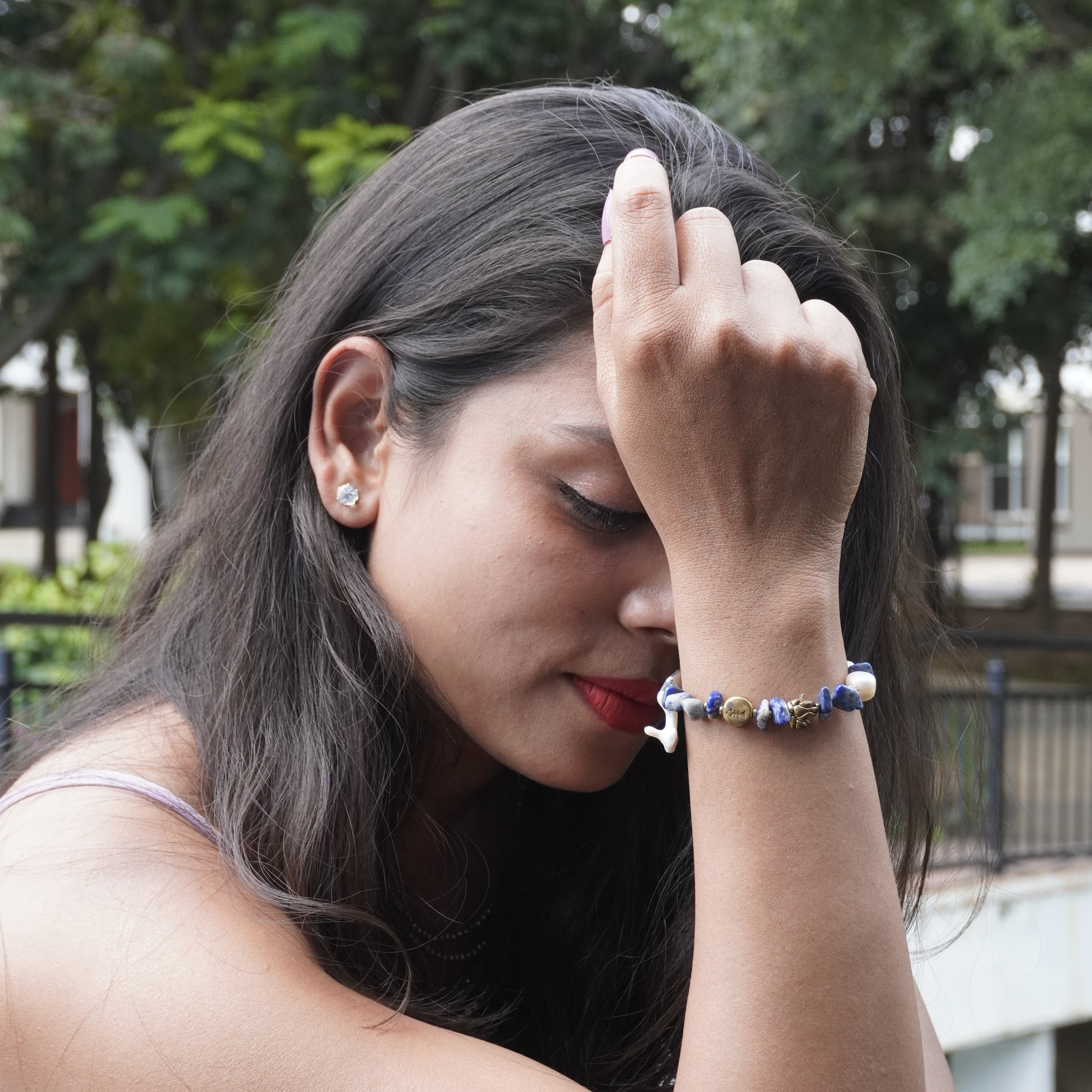 Lapis Lazuli Bracelet: Lotus and Pearl Charm
