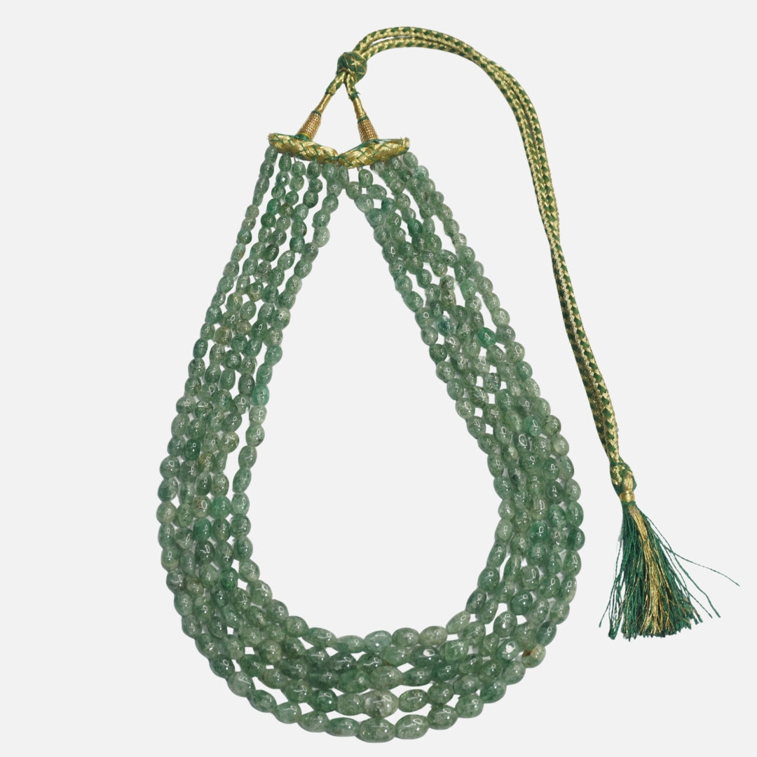 Green Quartz Necklace - Petal Beads 5 Layer