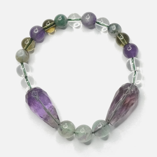 This powerful bracelet features Amethyst, Green Moss Agate, Clear Quartz, Fluorite, and Smokey Quartz for balance, focus, and emotional strength. It enhances meditation, self-awareness, and spiritual connection, making it perfect for personal transformation. Fluorite and Green Moss Agate improve emotional stability, while Smokey Quartz provides grounding. Wear it for clarity, resilience, and inner harmony.